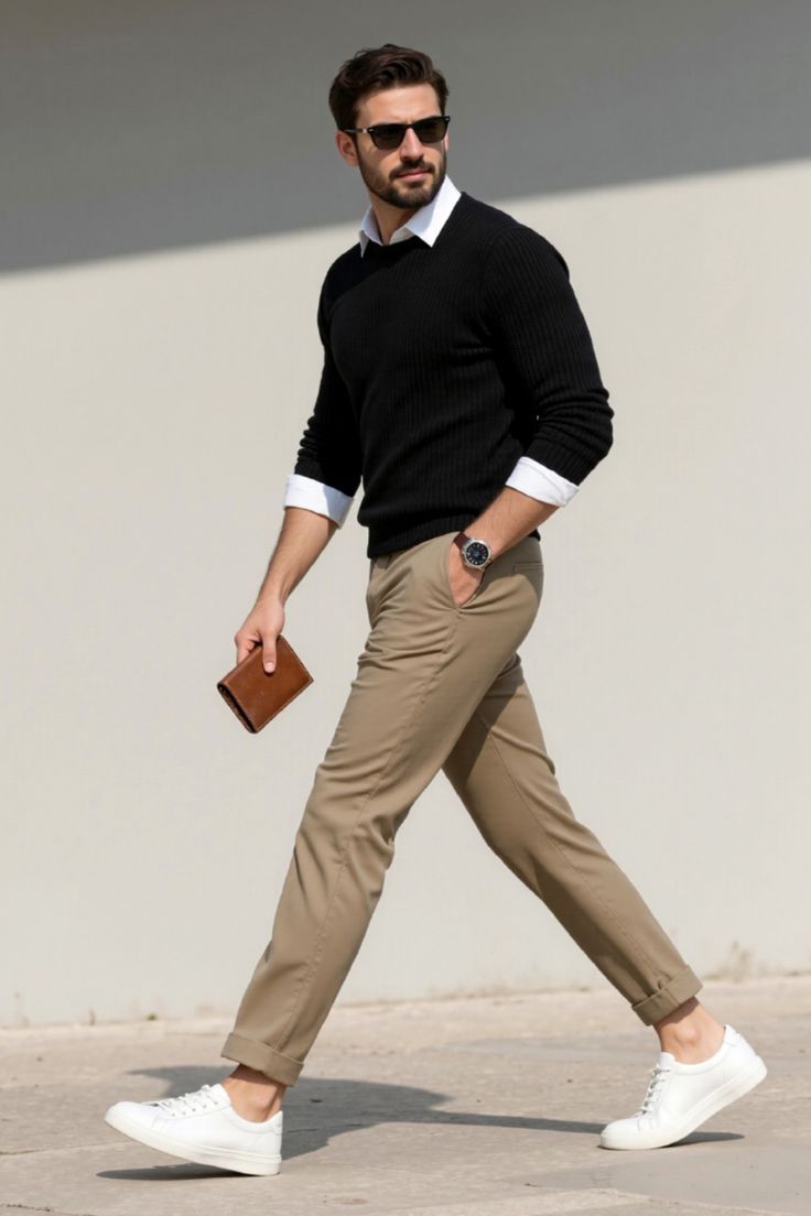 Easy to pair with t-shirts, dress shirts, or sneakers