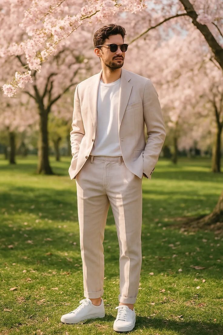 Crafted from lightweight, breathable fabric, this suit ensures all-day comfort while maintaining a polished look. The neutral beige color makes it easy to style with a simple t-shirt for a casual smart look or a dress shirt for more formal occasions. Perfect for business casual events, weddings, parties, office wear, and special occasions.